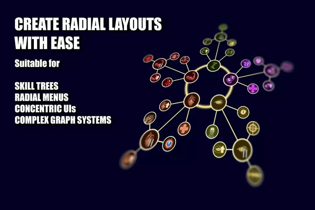 Multiple Applications: Perfect for creating skill trees, radial menus, graph UIs, main UI panels, and much more.
